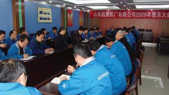 山東起重機(jī)廠有限公司第四屆第二次董事會(huì)會(huì)議、2009年股東大會(huì)于二零零九年三月十四日在山東起重機(jī)廠有限公司會(huì)議室召開(kāi),公司董事長(zhǎng)徐新民主持會(huì)議,總經(jīng)理周嗣臣作二零零八年度工作報(bào)告,財(cái)務(wù)總監(jiān)葛虹作財(cái)務(wù)工作報(bào)告。